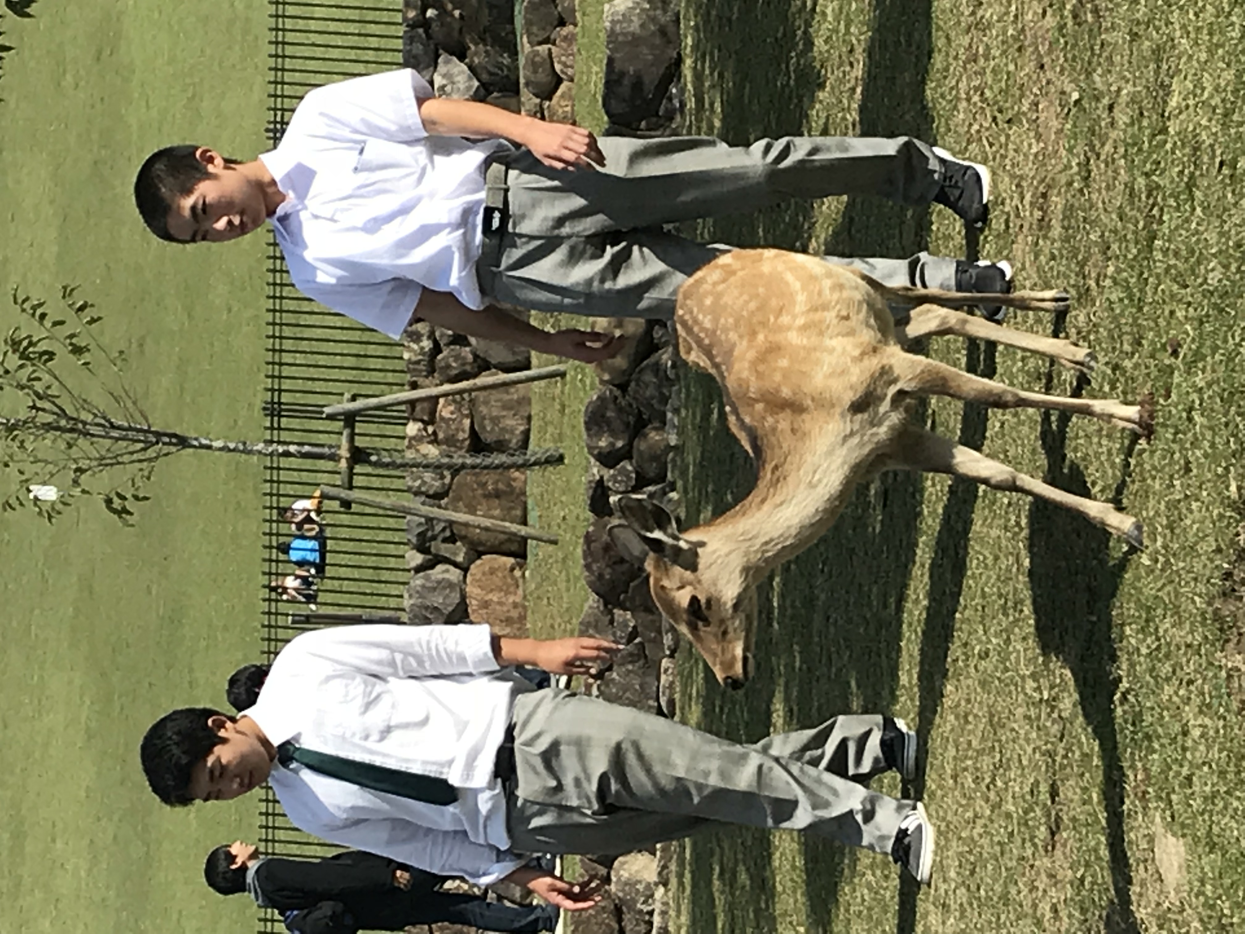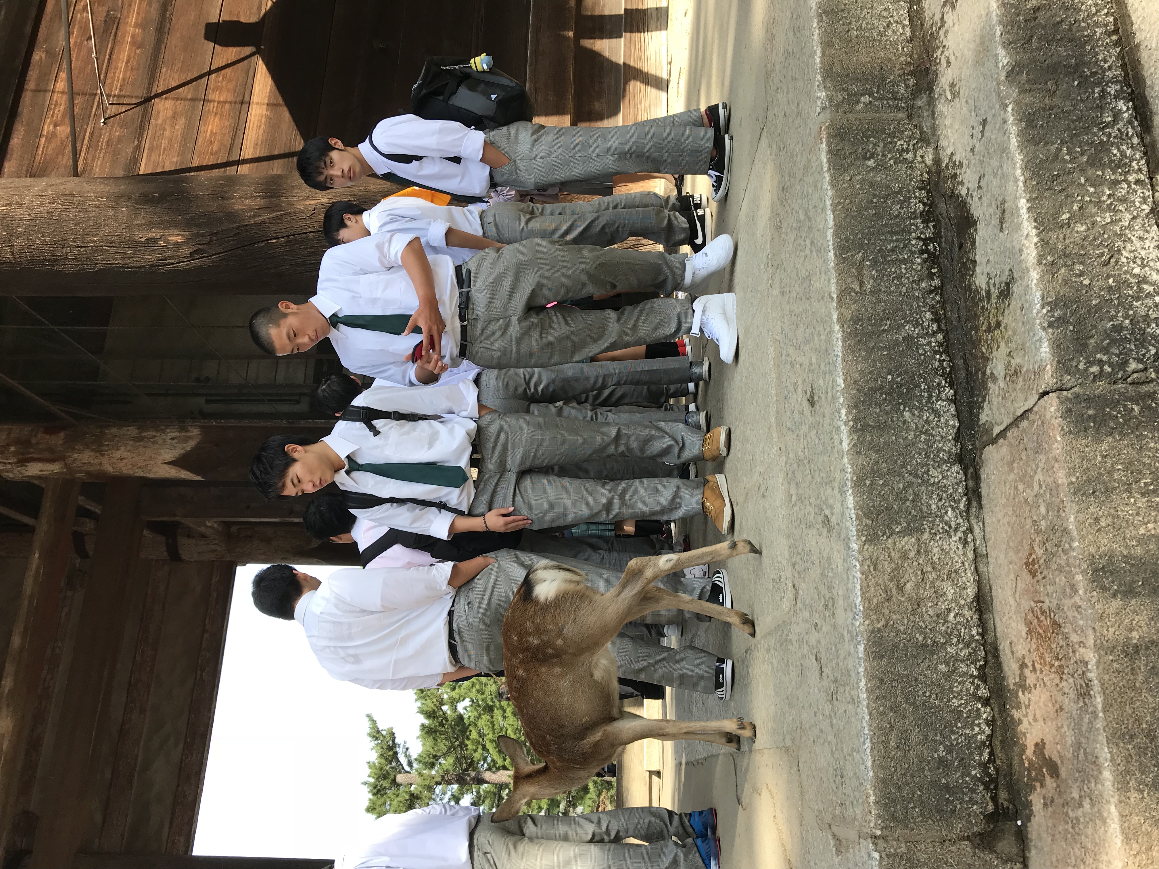 初日は、福島空港から伊丹空港まで飛行機で移動し、その後、法隆寺と奈良公園の見学をしました。東大寺の大仏の大きさに驚いたり、鹿と記念撮影をするなどして、奈良の歴史と文化に触れることができました。