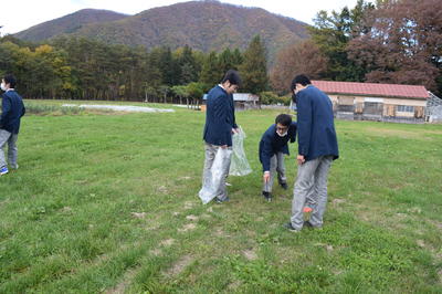 11月5日に行われた避難訓練終了後、全校生徒による敷地内一斉清掃を行いました。本校の敷地は県内有数の広さを誇り、管理するのも一苦労ですが、生徒全員でゴミ拾いを行い環境美化に努めました。