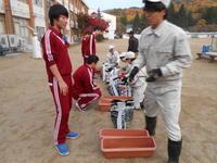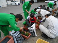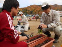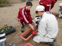本校環境科学コース三年生が主体となり、植栽指導をしてきました。