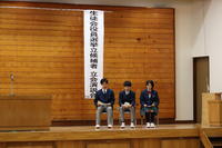 平成30年2月9日(金)、3年生の代表生徒による「進路体験発表会」が行われました。これは、進路を決定した3年生が進路実現に向けてどのように取り組んできたのかを、1・2年生に向けて発表するものです。大学・短大・専門学校合格者、公務員試験合格者、就職内定者の計10名が、「試験の内容」、「試験に向けての準備」、「当日の感想」、「高校生活で頑張ってきたこと」、「後輩へのアドバイス」などについて、熱く語ってくれました。1・2年生にとって大変有意義な情報ばかりで、刺激になったと思います。