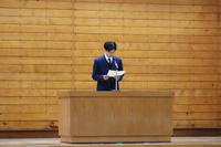 式では、一人ひとりの名前を担任の加藤竹志先生、杉田一馬先生、岸孝容先生が読み上げ、大竹礼乃さん、渡部雅也くん、君島直樹くんの3名がクラスを代表して卒業証書を受け取りました。次に湯田重哉校長の式辞が読み上げられ、さらに星學下郷町町長、湯田良一同窓会会長、猪股淳父母と教師の会会長より祝辞を頂きました。その後、星拓海くんが在校生代表送辞を、栗城斗真くんが卒業生代表答辞を行いました。最後には、校歌と式歌「蛍の光」が斉唱され、約1時間の式は感動のうちにラストを迎えました。