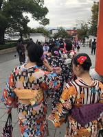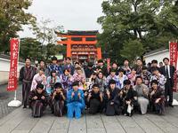着物を着て、まず伏見稲荷大社に向かい、千本鳥居を着物姿で練り歩きました。
