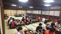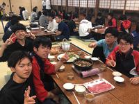 旅館の夕食はすき焼き鍋。みんなたっぷり堪能しました。