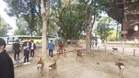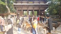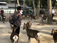 奈良公園ではシカに囲まれながら鹿せんべいあげてました。