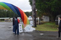 開催のために朝から、歓迎係が歓迎門の設置をしていました。