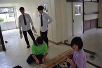 公開に向けて生徒たちが朝早くから準備に取り掛かっています。
