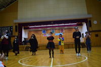 パフォーマンスを終えて、ホッと一息をついている生徒たちです。