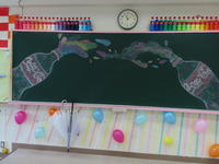黒板アートに合わせたデコレーションをクラス中に施しており、1組らしい雰囲気を作り出していました。