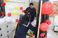 上の写真は、放課後、案内係で受付場所を作っている様子です。クラスの準備もあり疲れている様子が見られましたが、笑顔で取り組んでくれました。