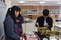 上の写真は、クラスの準備に取り組んでいる生徒たちです。明日の一般公開に向けて一生懸命頑張っていました。