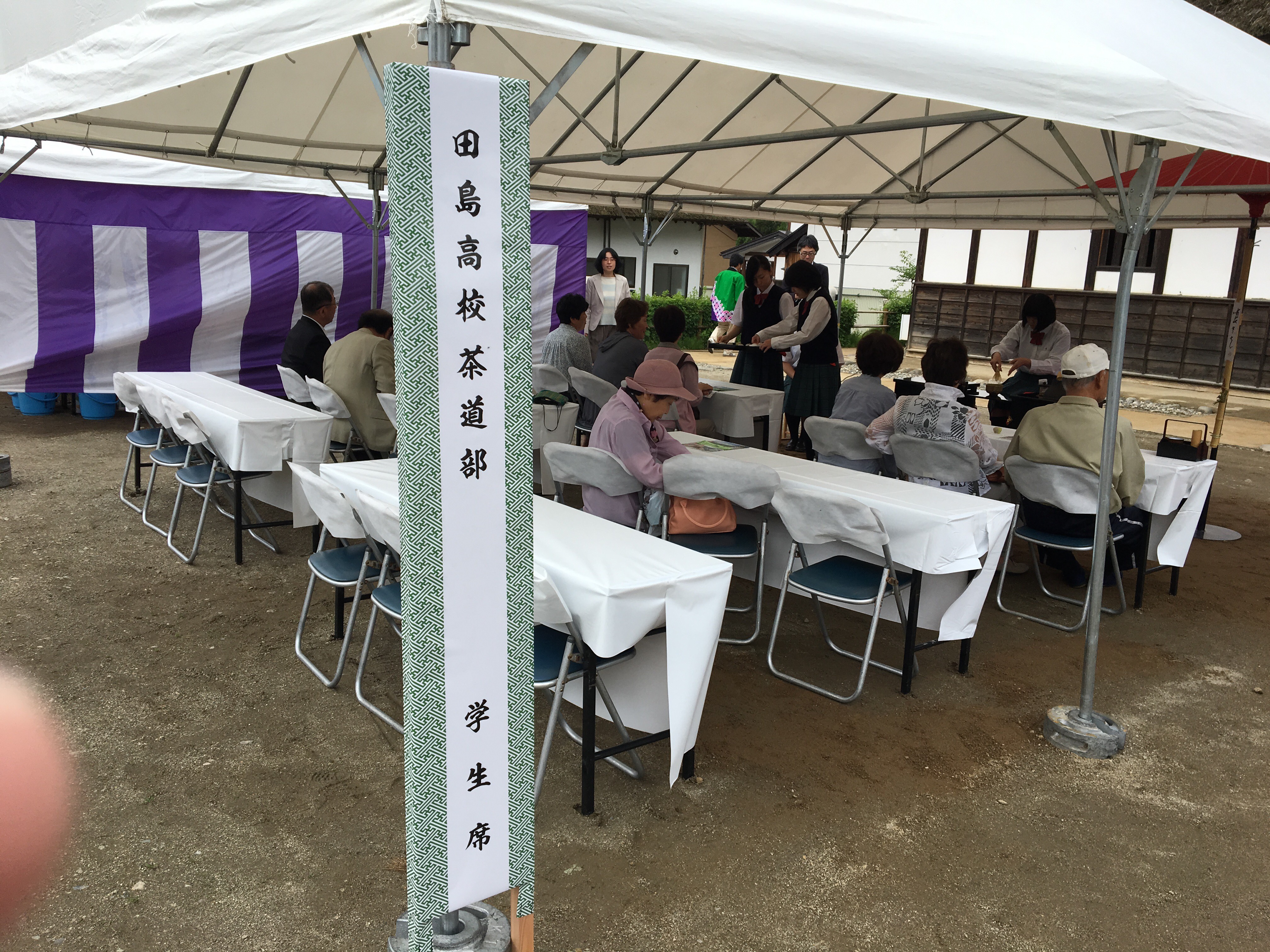 6月9日(日)に開催された第2回大内宿茶会に、本校の総合文化部茶道班が昨年に引き続き招待され参加しました。今年は、本校茶道班のために個別のブースを設置していただきました。