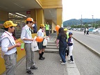 開会式ではJRC委員の2名の代表が薬物乱用撲滅宣言「ダメ。ゼッタイ。」を元気よく宣言し、2か所に分かれて募金活動と啓発グッズ配付の活動を行いました。途中、雨に見舞われ、やや時間を早めての終了でしたが、参加した生徒たちは多くの来店客に声をかけ、生き生きと活動しました。(なお、この日の活動の様子は福島民報7月1日会津版にも掲載されました。)