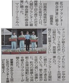 田島高校JRC委員会は11月19日~20日にかけて、校内での赤い羽根共同募金活動を行いました。全校生徒、教職員等から合計9397円が集まり、集めたお金を12月8日(火)に南会津町社会福祉協議会に全額寄付させていただきました。