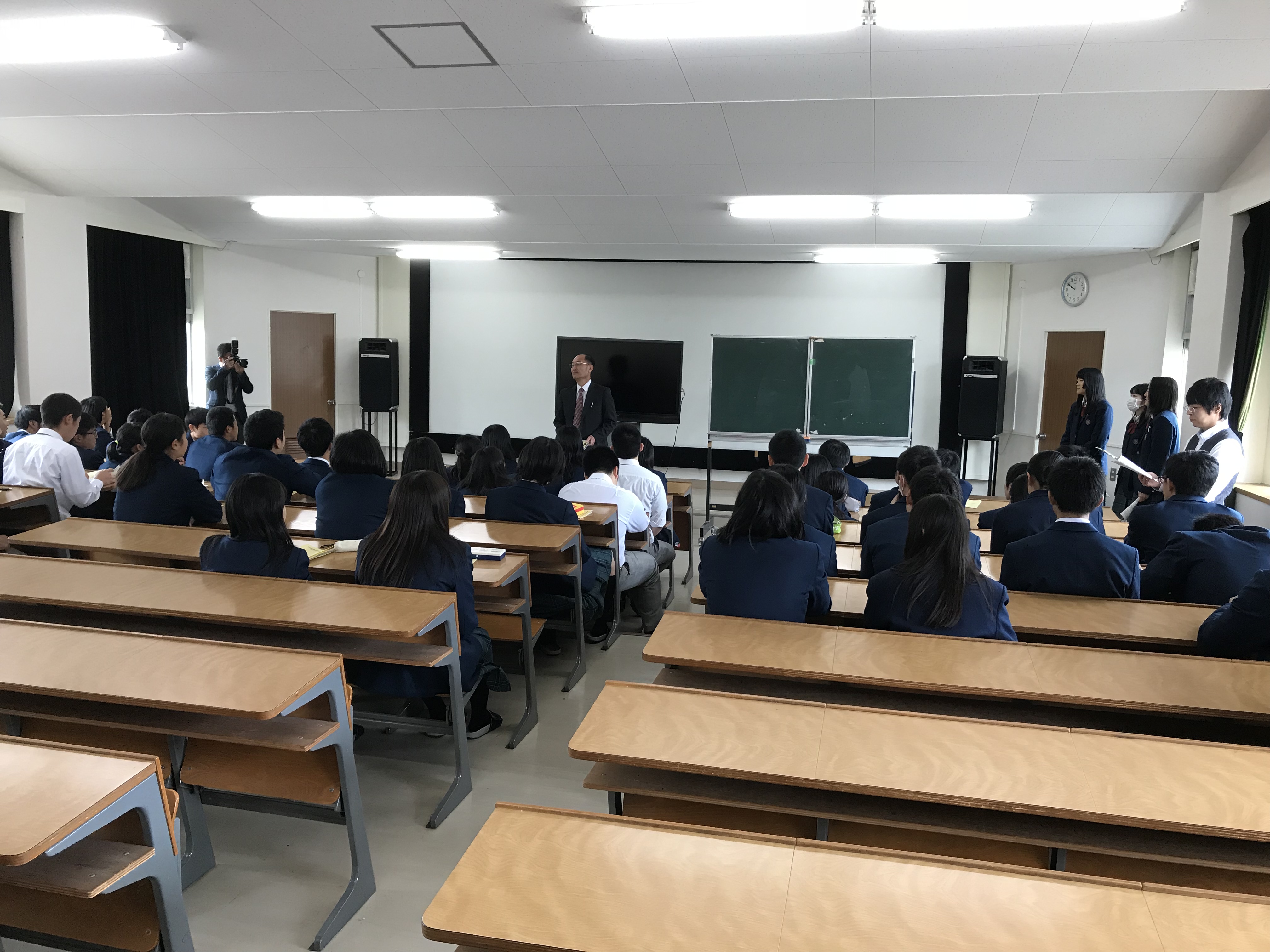 着任式後、前期始業式にて校長より全校生徒に向けてお話がありました。