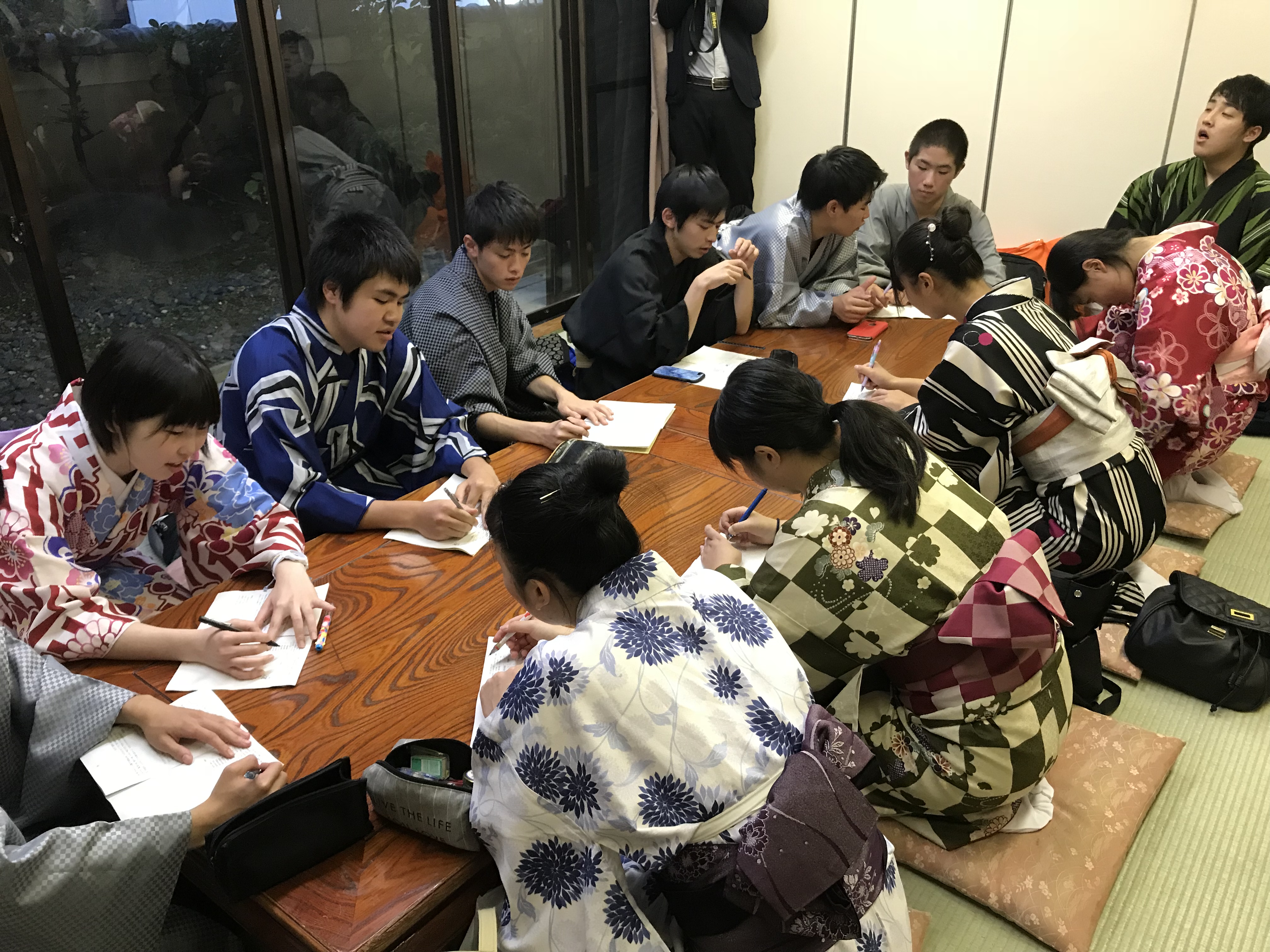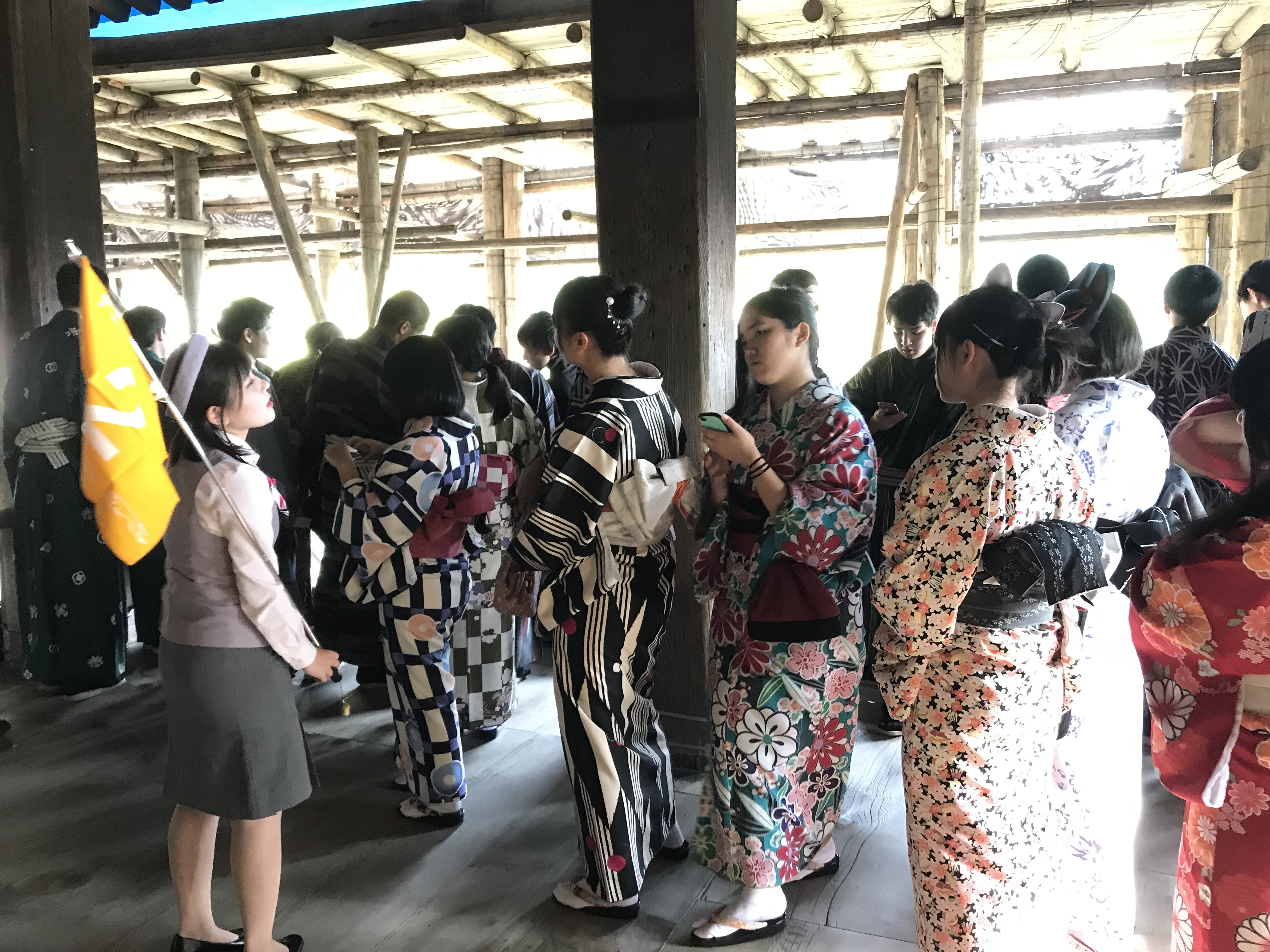 3日目は、まず全員で着物をレンタルし、着付けした後に清水寺を見学しました。あいにく小雨が降る天候でしたが、大変いい思い出になったと思います。その後、二条城を見学してから大阪に移動し、なんばグランド花月の公演を鑑賞しました。さすがお笑いの本場であり、大爆笑の連続で気分も高まりました。