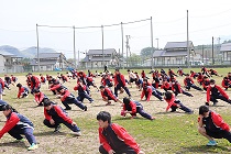 しっかりと準備体操を行う生徒達 勢いよく飛び出す3年男子生徒達
