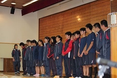 式では、一人ひとりの名前を担任の加藤竹志先生、杉田一馬先生、岸孝容先生が読み上げ、大竹礼乃さん、渡部雅也くん、君島直樹くんの3名がクラスを代表して卒業証書を受け取りました。次に湯田重哉校長の式辞が読み上げられ、さらに星學下郷町町長、湯田良一同窓会会長、猪股淳父母と教師の会会長より祝辞を頂きました。その後、星拓海くんが在校生代表送辞を、栗城斗真くんが卒業生代表答辞を行いました。最後には、校歌と式歌「蛍の光」が斉唱され、約1時間の式は感動のうちにラストを迎えました。