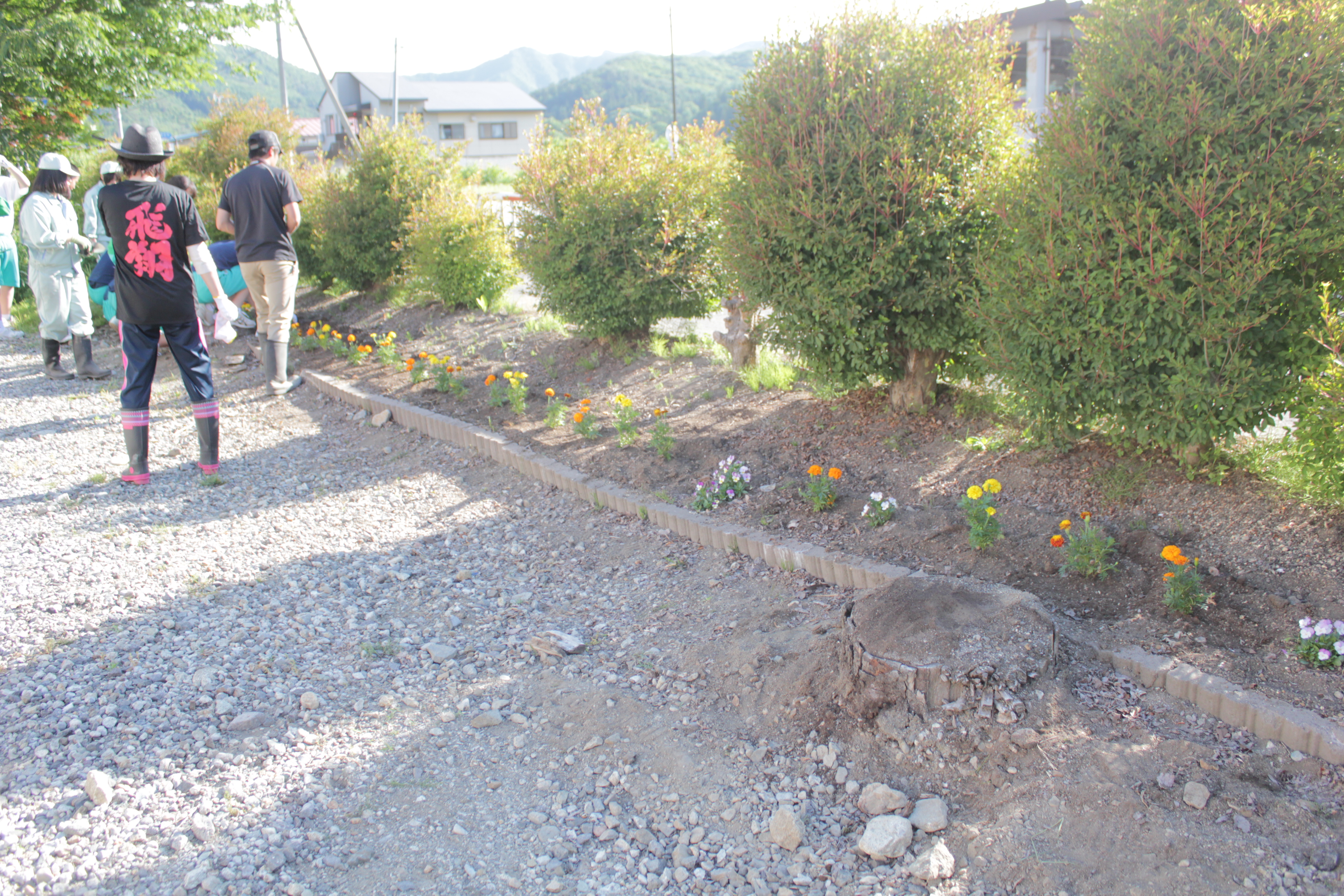 ↑11月は学校のグラウンド裏手の南総建様事務所から学校校門まで
