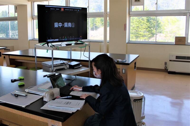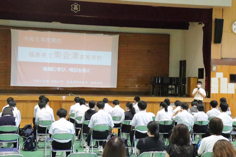全体会で令和5年度開校の「福島県立南会津高等学校」についての説明を受けた後、授業の見学をしていただきました。