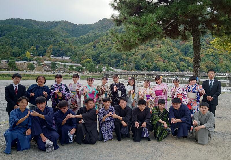 3日目は、まず全員で着物をレンタルし、着付けした後に清水寺を見学しました。あいにく小雨が降る天候でしたが、大変いい思い出になったと思います。その後、二条城を見学してから大阪に移動し、なんばグランド花月の公演を鑑賞しました。さすがお笑いの本場であり、大爆笑の連続で気分も高まりました。