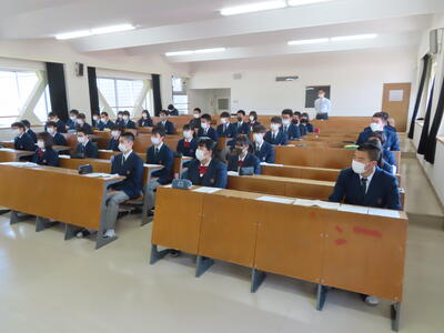 平成30年2月9日(金)、3年生の代表生徒による「進路体験発表会」が行われました。これは、進路を決定した3年生が進路実現に向けてどのように取り組んできたのかを、1・2年生に向けて発表するものです。大学・短大・専門学校合格者、公務員試験合格者、就職内定者の計10名が、「試験の内容」、「試験に向けての準備」、「当日の感想」、「高校生活で頑張ってきたこと」、「後輩へのアドバイス」などについて、熱く語ってくれました。1・2年生にとって大変有意義な情報ばかりで、刺激になったと思います。