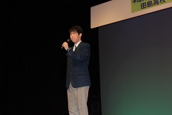 今年度は、3年ぶりに体育館での立会演説会を実施しました。立候補者たちは、より良い田島高校をつくり上げていくための公約を演説し、応援演説者が、各立候補者の良さを熱く語りました。
