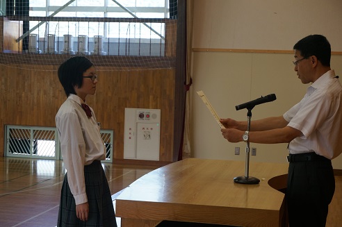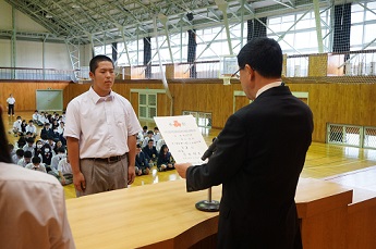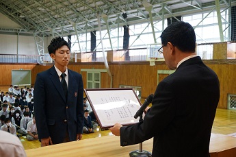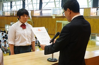 今日は、賞状伝達があり、部活で活躍した生徒や各種検定にい合格した生徒など、