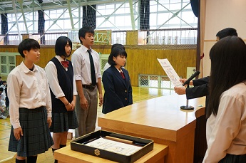 11月10日(木)には、新しい生徒会役員の任命式を行いました。