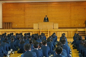 着任式後、前期始業式にて校長より全校生徒に向けてお話がありました。