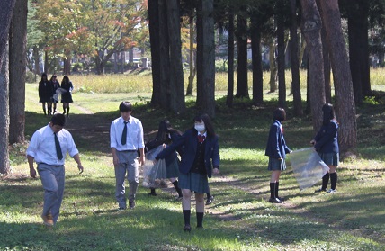 10月7日(水)と11月18日(水)に校外清掃活動を行いました。雪のシーズンを前に年度最後?となる活動を、生徒たちは熱心に行ってくれました。