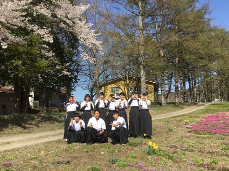 集合写真も撮りました。田島は気温が低いので桜は4月末から5月初めに咲きます。
