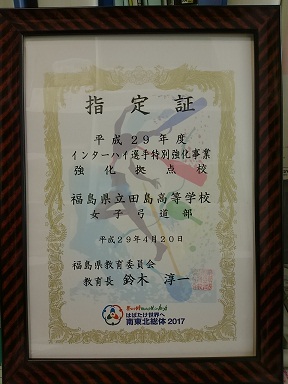 先日の新聞でも掲載されましたが、本校女子弓道部がIH選手特別強化事業強化拠点校に指定されました。