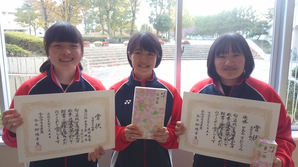 2年生チームが一年生大会に続いての賞状獲得となりました。2年生の部員は3人しかいませんがみなやる気があり、確実に成長しています。合宿で見られた的中が本番も出せたのは立派です。今後の大会も期待しています☆