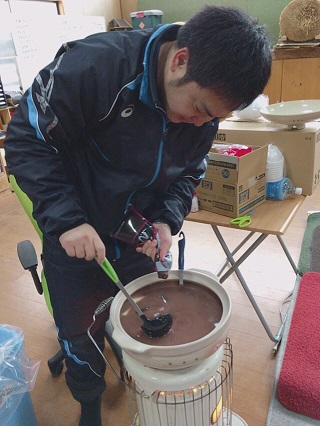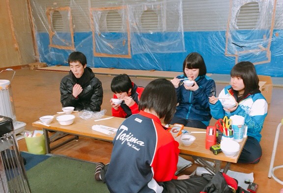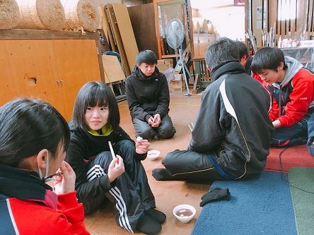 この間に私は「おしるこ」を作りました。雪かたしが終わった後、部員全員でいただきました。