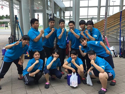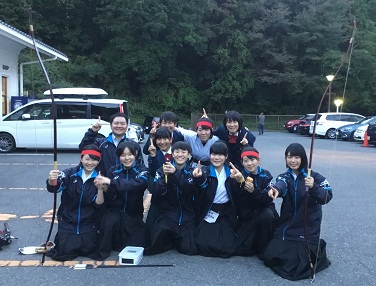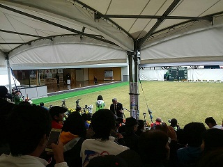 3人団体戦のメンバーは昨日の結果から判断して1弓田・2君島・3阿久津です。結果は12射7中でした。同中のため決勝トーナメント進出をかけた競射となり、残念ながら敗退tなりました。