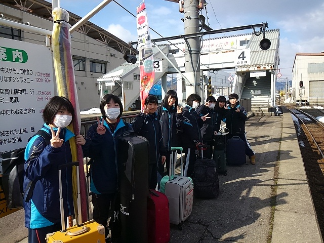 会津鉄道で移動です。会津田島から春日部まで直通です。はじめての県外大会、電車移動でちょっと緊張しています。田島はまだまだ雪が残り寒いのですが、2時間ほど電車に乗るともう春です。昼に宿舎に到着し、埼玉栄高校にお邪魔して練習させていただきました。