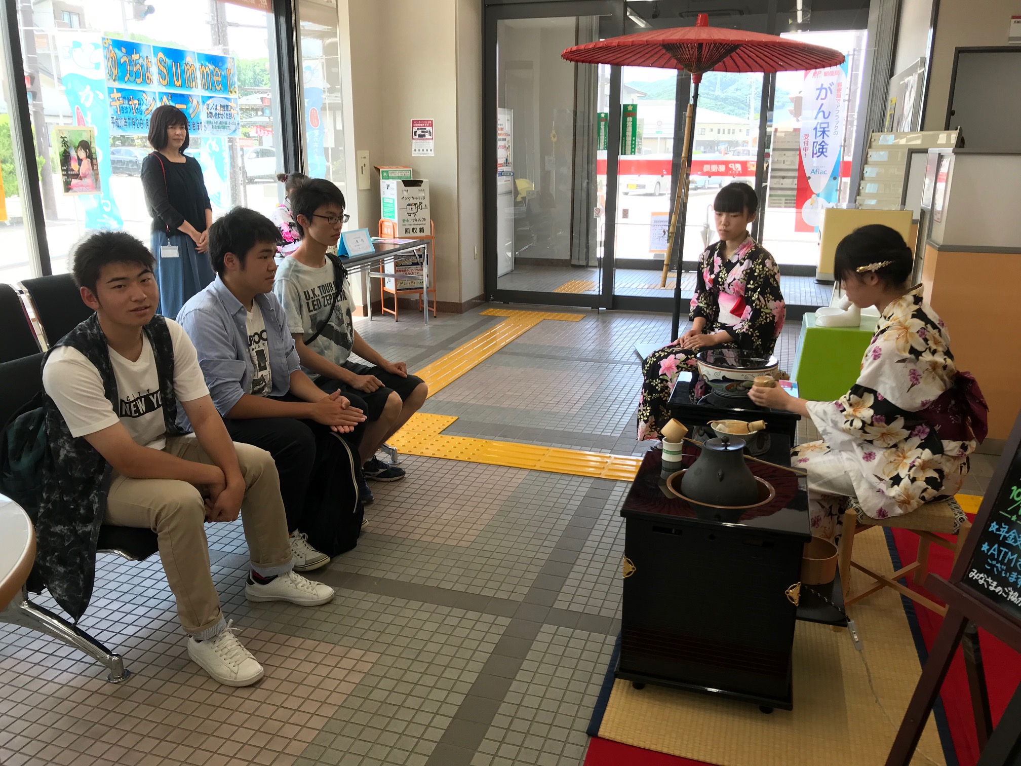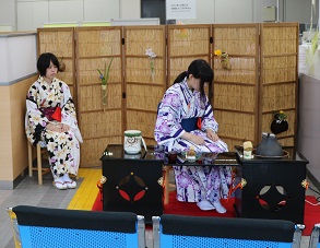 総合文化部茶道班は田島郵便局1階フロアを