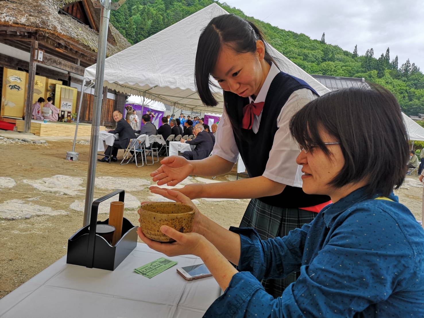 先日6月9日大内宿で茶会が開かれ、田島高校の茶道部も参加してきました