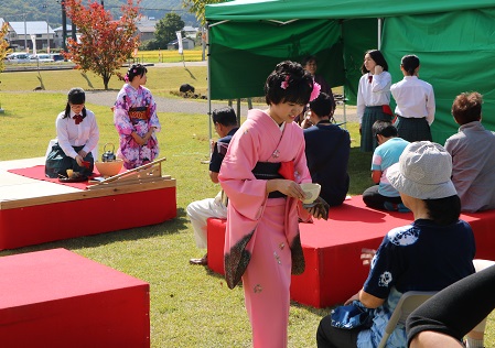 その会場の隣で、田島高校茶道部 野点を行いました。