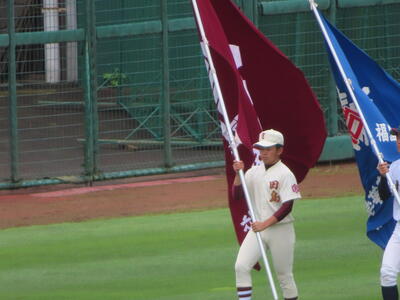 7月9日(金)に本校野球部は初戦となる2回戦で橘高校と対戦しました。試合は序盤から点が動く展開になりますが、先発の仲田晃(2年)が粘り強く相手打線を抑えていきます。3回には2死2塁から1番佐藤大(3年)のレフトオーバーの適時二塁打で勝ち越し。5回表に同点とされますが、その裏にすぐに勝ち越します。3対2で迎えた6回からはエース佐藤大へ継投し、4イニングを1安打に抑える完璧なピッチングで勝利を収めることが出来ました。相手投手は最速137㎞と好投手でしたが、主砲一柳怜央(3年)が3安打を放つなど、少ないチャンスをものにすることが出来ました。