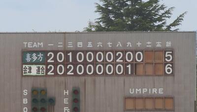 8月29日(土)に秋季会津支部大会の代表決定戦が行われ、本校野球部は喜多方桐桜高校と対戦いたしました。試合は中盤にかけて相手チームに主導権を握られ0-5とリードを広げられます。しかし、終盤にチャンスを作ると7回・8回で4点を返す展開に。9回表に相手チームに2点を追加され4-7とリードを広げられますが、9回裏の攻撃で4本の安打を集め2点を返し1点差。なおも2死1・2塁とチャンスを作りますが、反撃もここまでとなり、6-7で敗戦となってしまいました。今大会は勝って嬉し涙を流し、負けて悔し涙を流すなど非常に充実した大会になりました。1戦ごとにチームは成長していき、大きな収穫を得ることができました。会津支部の中で十分戦っていけるという自信を胸に10月に行われる全会津選手権大会では優勝目指して頑張りたいと思います。