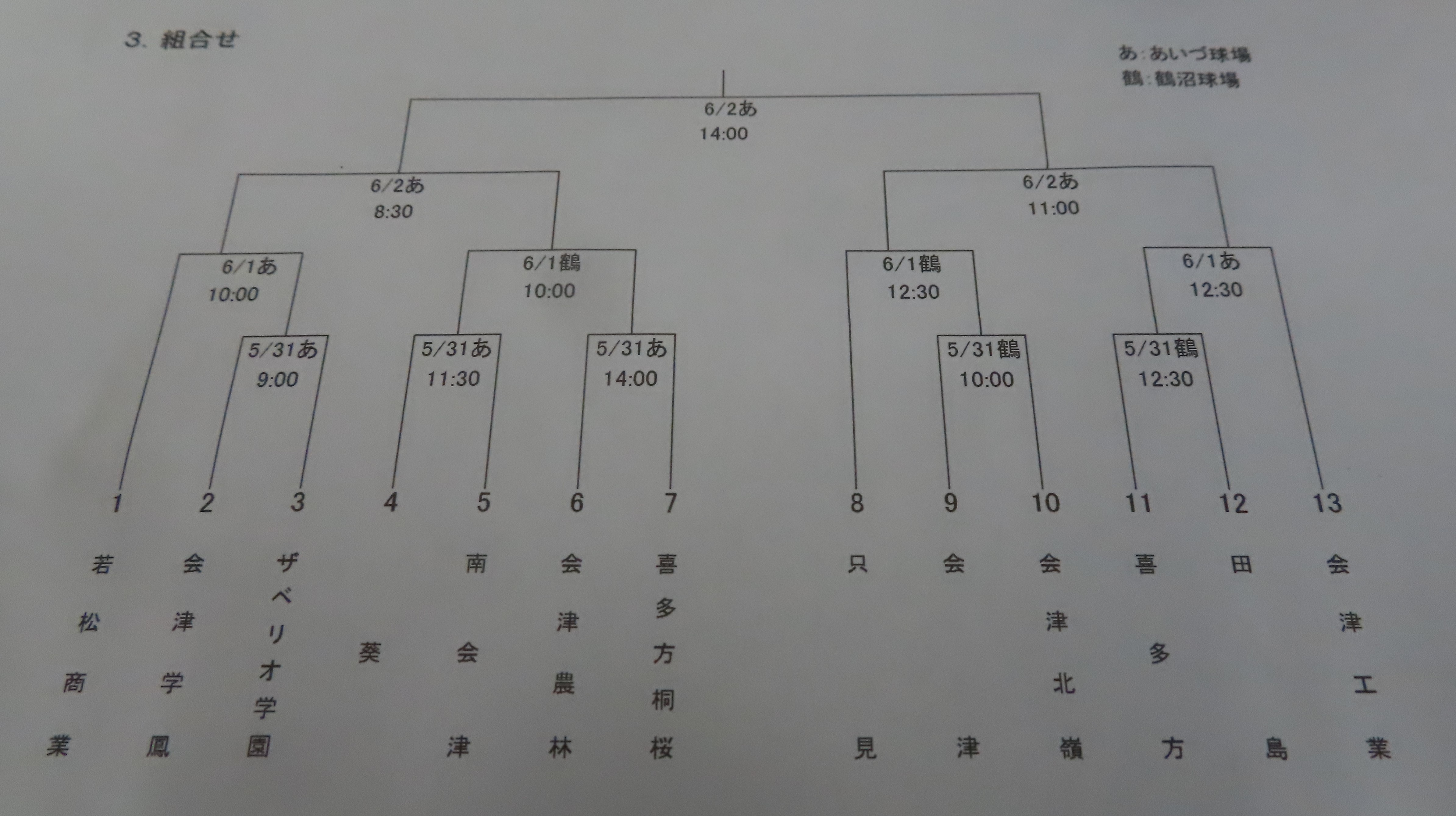 1日 土 全会津選手権大会 あいづ球場・鶴沼球場