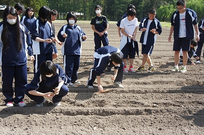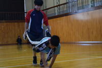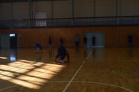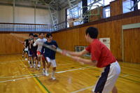 列車事故の影響もあり参加者が少ないため、野球部と吹奏楽部、陸上部と弓道部、バスケットボール部と3チームに分けて対戦しました。