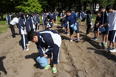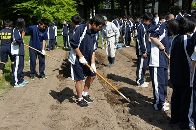 田島高校では年2回、田島高校前駅舎周辺や学校敷地周辺を含めた全校での一斉清掃を行っています。