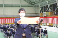 開会式では、バスケットボール部と野球部のマネージャーが選手宣誓を行いました。