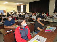9月15日(火)、福島民報社地域交流局の市川純一様をお招きして、主権者教育講演会を行いました。進路活動が本格スタートする前に、新聞の読み方だけでなく、選挙の仕組みや投票の重要性を解説していただきました。この講演会の前日に菅義偉氏が自民党新総裁に当選したニュースがあったこともあり、生徒たちは政治の記事に注目していました。18歳から選挙権を持つことになったことで、自分の一票が政治を変えることの重要性を理解したようです。
