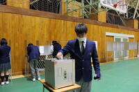 投票では、南会津の選挙管理委員会で実際に使われている「投票箱」と「記載台」をお借りするとともに、入場券まで作成して、本番さながらに実施しました。