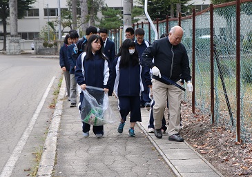 10月7日(水)と11月18日(水)に校外清掃活動を行いました。雪のシーズンを前に年度最後?となる活動を、生徒たちは熱心に行ってくれました。