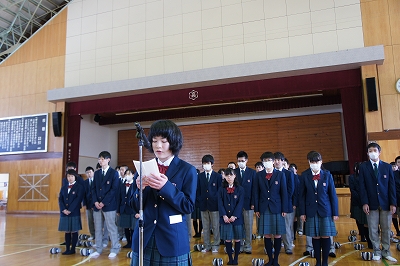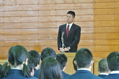 着任式後、前期始業式にて校長より全校生徒に向けてお話がありました。