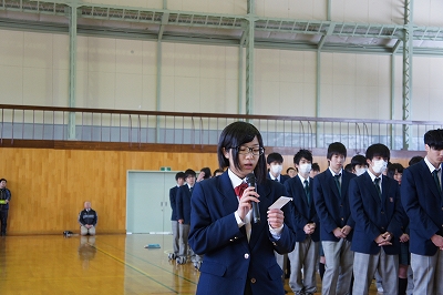 3年生は高校生活最後、2・1年生は次年度へ向けた良い学期にしていってほしいです。